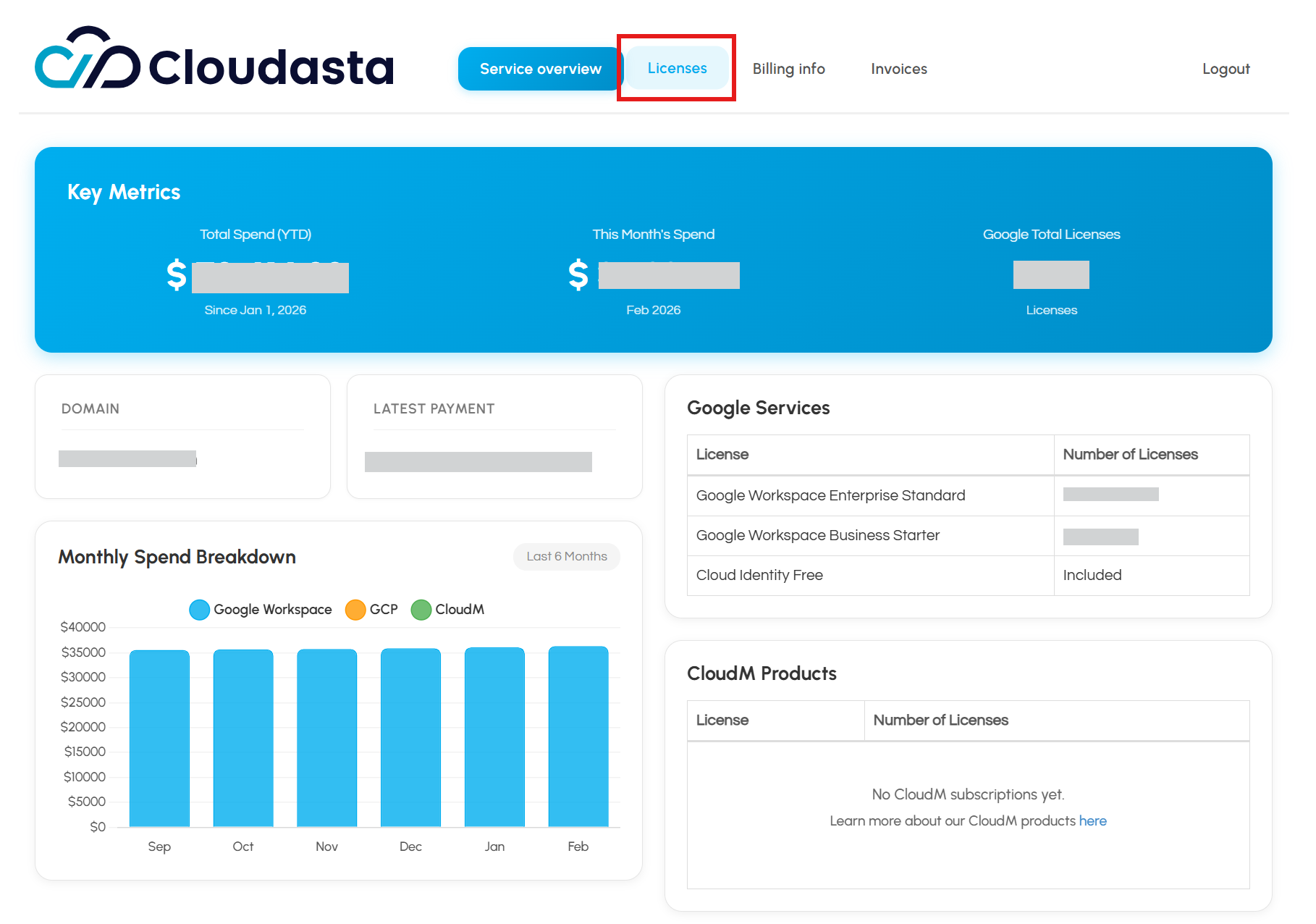 - Access our billing portal (https://billing.cloudasta.com) and use your Super Admin credentials to log in.