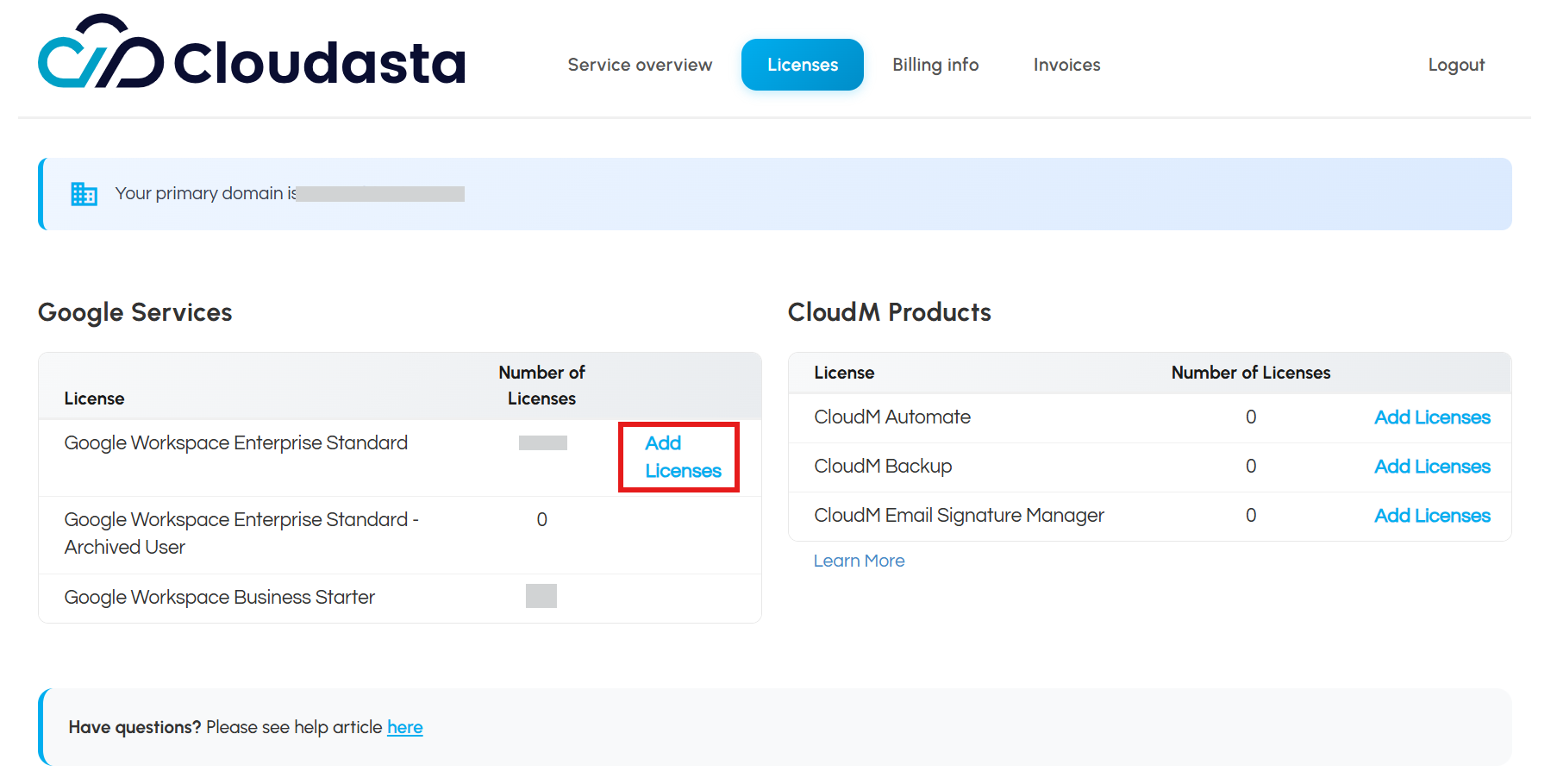 - From the dashboard page, click “Licenses” on the top menu.
